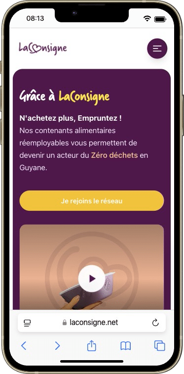 Application Web + Site vitrine pour emprunter des contenants alimentaires réemployables en Guyane.